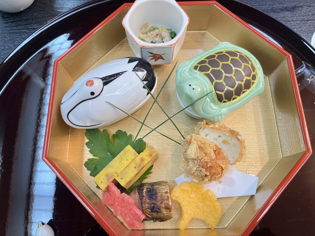 落ち着いた雰囲気の中で、寿会席をいただきました。
