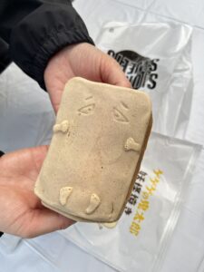 生地がとにかく独特で、もっちり。そして中にはカスタードクリームがたっぷり。甘すぎず、子どもも大人も楽しめる味でした。