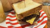 四角い食パンのハンバーガーは珍しいです。