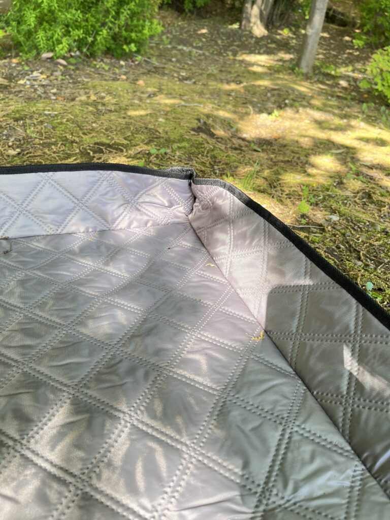 これまで薄手のレジャーシートを使っていましたが、今回「キルティングピクニックマット」という厚手タイプを購入してみました。
