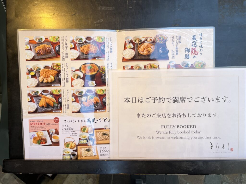 「本日は予約でいっぱいです」の表示。